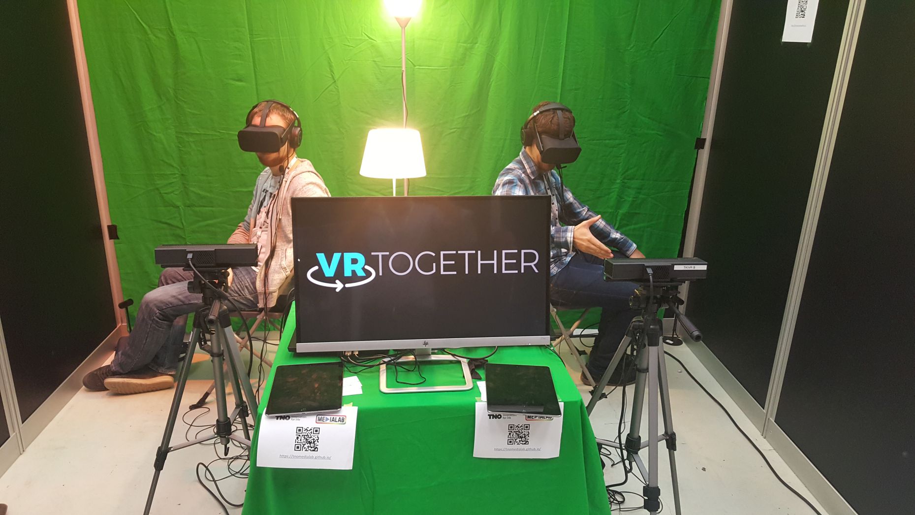 VR-Together partner TNO demonstrated its initial social VR platform at VR Days EU 2017 in Amsterdam on 24-26 october. Two visitors had the opportunity to visit and share a virtual living room, play a game of Blobby Volley and experience social VR first-hand.